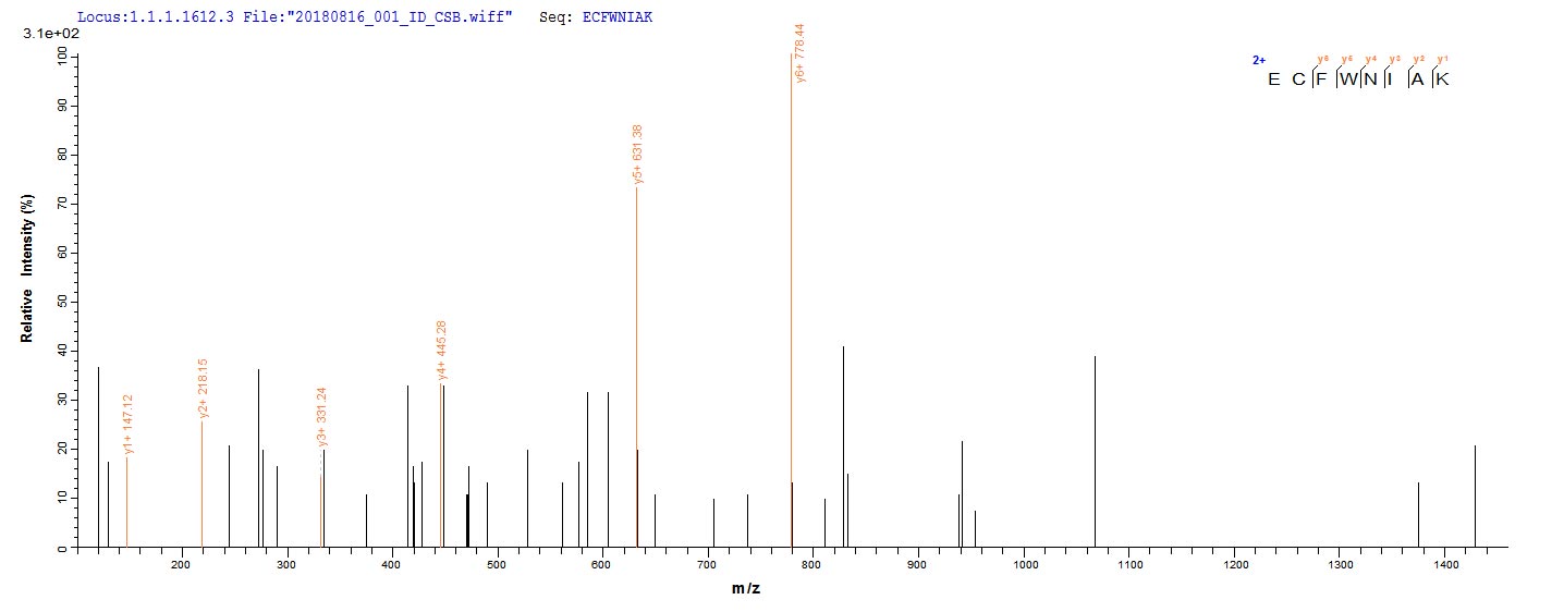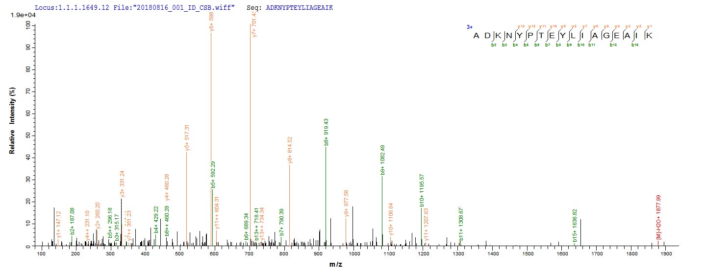 • Based on the SEQUEST from database of E.coli host and target protein, the LC-MS/MS Analysis result of CSB-EP333469THS could indicate that this peptide derived from E.coli-expressed Treponema phagedenis tmpB.