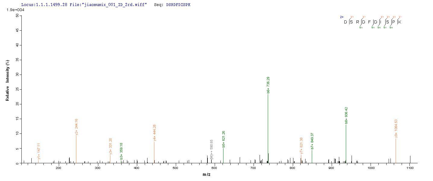 Based on the SEQUEST from database of Yeast host and target protein, the LC-MS/MS Analysis result of CSB-YP338792YAS could indicate that this peptide derived from Yeast-expressed Yersinia pestis caf1.