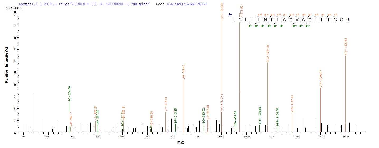 Based on the SEQUEST from database of E.coli host and target protein, the LC-MS/MS Analysis result of CSB-EP311249ZAT could indicate that this peptide derived from E.coli-expressed Zaire ebolavirus (strain Kikwit-95) (ZEBOV) (Zaire Ebola virus) GP.