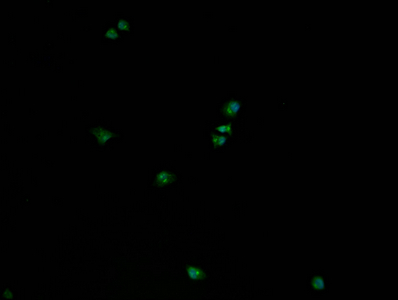 • Immunofluorescence staining of HepG2 cells with(CSB-MA000071M2m)at 1:50, counter-stained with DAPI. The cells were fixed in 4% formaldehyde, permeabilized using 0.2% Triton X-100 and blocked in 10% normal Goat Serum. The cells were then incubated with the antibody overnight at 4°C. Nuclear DNA was labeled in blue with DAPI. The secondary antibody was FITC-conjugated AffiniPure Goat Anti-Mouse IgG (H+L).