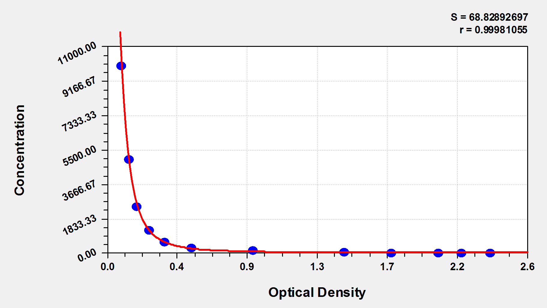 最低檢測限是靈敏度的測試指標。由使用的抗體效價等決定的,在研發過程中,一般會優化保證高靈敏度、低背景的檢測結果從而大大提高試劑盒的靈敏度。檢測限越低,靈敏度越高。通過將零標準重復獲得的平均 O.D. 加上3個標準偏差來確定靈敏度。