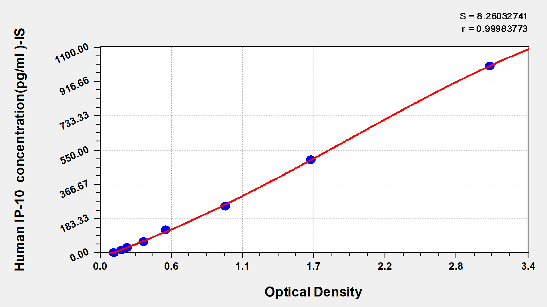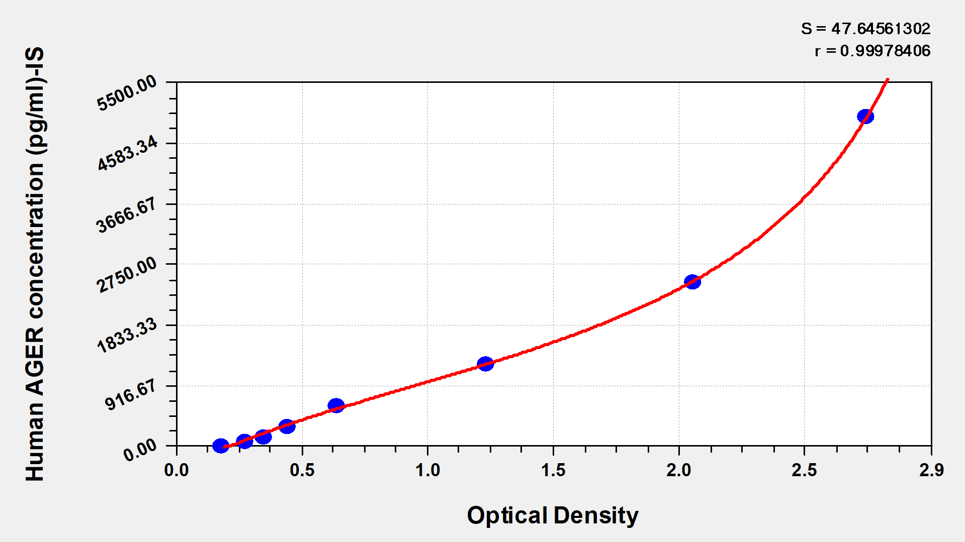 通過線性范圍來計算出實際的檢測樣本值,定量試劑盒標準曲線的相關系數R大于0.99。以CSB-E07270h(人脂聯素(ADP)ELISA Kit)為例的標準曲線。