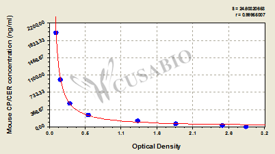 通過線性范圍來計算出實際的檢測樣本值,定量試劑盒標準曲線的相關系數R大于0.99。以CSB-E07270h(人脂聯素(ADP)ELISA Kit)為例的標準曲線。