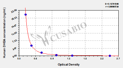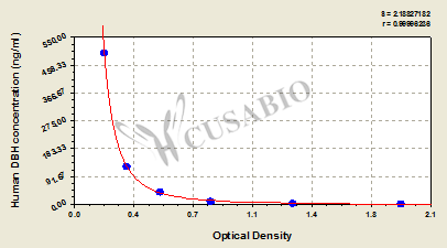 通過線性范圍來計算出實際的檢測樣本值,定量試劑盒標準曲線的相關系數R大于0.99。以CSB-E07270h(人脂聯素(ADP)ELISA Kit)為例的標準曲線。