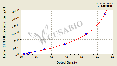 通過線性范圍來計算出實際的檢測樣本值,定量試劑盒標準曲線的相關系數R大于0.99。以CSB-E07270h(人脂聯素(ADP)ELISA Kit)為例的標準曲線。