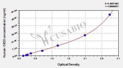 通過線性范圍來計算出實際的檢測樣本值,定量試劑盒標準曲線的相關(guān)系數(shù)R大于0.99。以CSB-E07270h(人脂聯(lián)素(ADP)ELISA Kit)為例的標準曲線。
