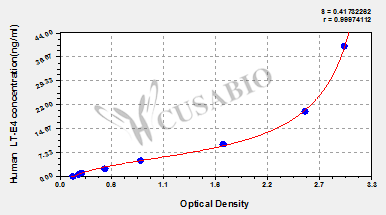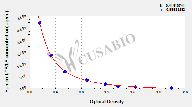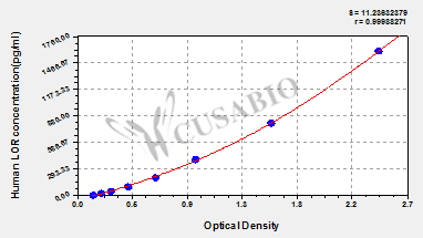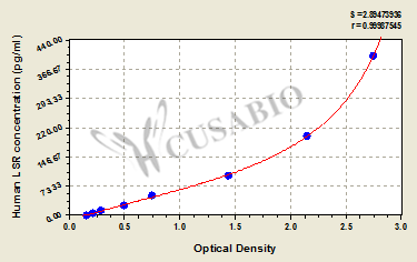 通過線性范圍來計算出實際的檢測樣本值,定量試劑盒標準曲線的相關(guān)系數(shù)R大于0.99。以CSB-E07270h(人脂聯(lián)素(ADP)ELISA Kit)為例的標準曲線。