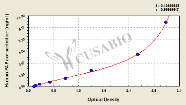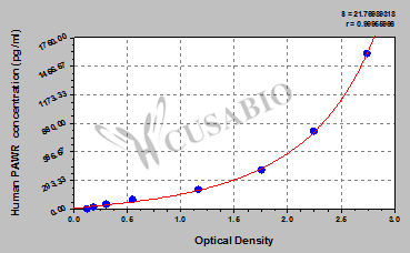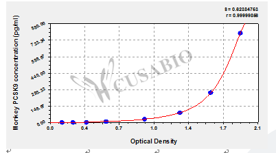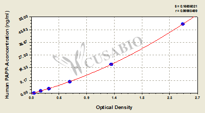 通過線性范圍來計算出實際的檢測樣本值,定量試劑盒標準曲線的相關(guān)系數(shù)R大于0.99。以CSB-E07270h(人脂聯(lián)素(ADP)ELISA Kit)為例的標準曲線。