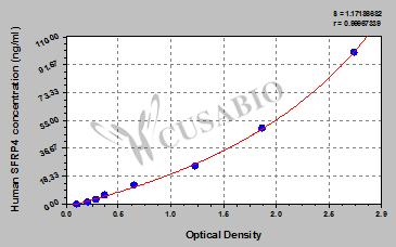 通過線性范圍來計算出實際的檢測樣本值,定量試劑盒標(biāo)準(zhǔn)曲線的相關(guān)系數(shù)R大于0.99。以CSB-E07270h(人脂聯(lián)素(ADP)ELISA Kit)為例的標(biāo)準(zhǔn)曲線。