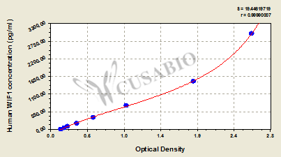 通過(guò)線性范圍來(lái)計(jì)算出實(shí)際的檢測(cè)樣本值,定量試劑盒標(biāo)準(zhǔn)曲線的相關(guān)系數(shù)R大于0.99。以CSB-E07270h(人脂聯(lián)素(ADP)ELISA Kit)為例的標(biāo)準(zhǔn)曲線。