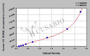 通過線性范圍來計(jì)算出實(shí)際的檢測樣本值,定量試劑盒標(biāo)準(zhǔn)曲線的相關(guān)系數(shù)R大于0.99。以CSB-E07270h(人脂聯(lián)素(ADP)ELISA Kit)為例的標(biāo)準(zhǔn)曲線。
