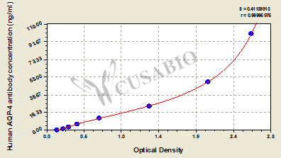 通過線性范圍來計算出實際的檢測樣本值,定量試劑盒標準曲線的相關系數R大于0.99。以CSB-E07270h(人脂聯素(ADP)ELISA Kit)為例的標準曲線。