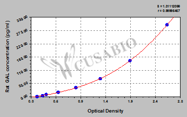 通過線性范圍來計算出實際的檢測樣本值,定量試劑盒標準曲線的相關系數R大于0.99。以CSB-E07270h(人脂聯素(ADP)ELISA Kit)為例的標準曲線。