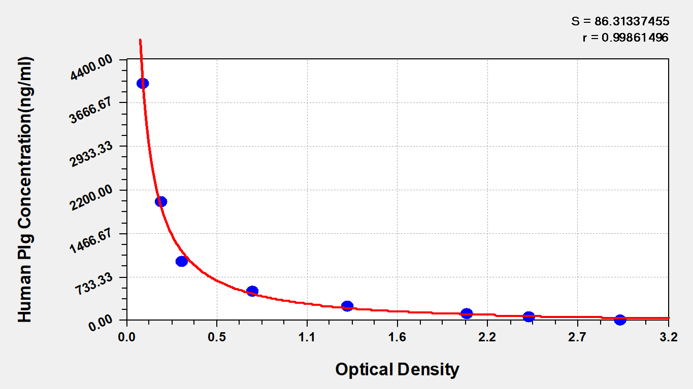 通過線性范圍來計算出實際的檢測樣本值,定量試劑盒標準曲線的相關系數R大于0.99。以CSB-E07270h(人脂聯素(ADP)ELISA Kit)為例的標準曲線。