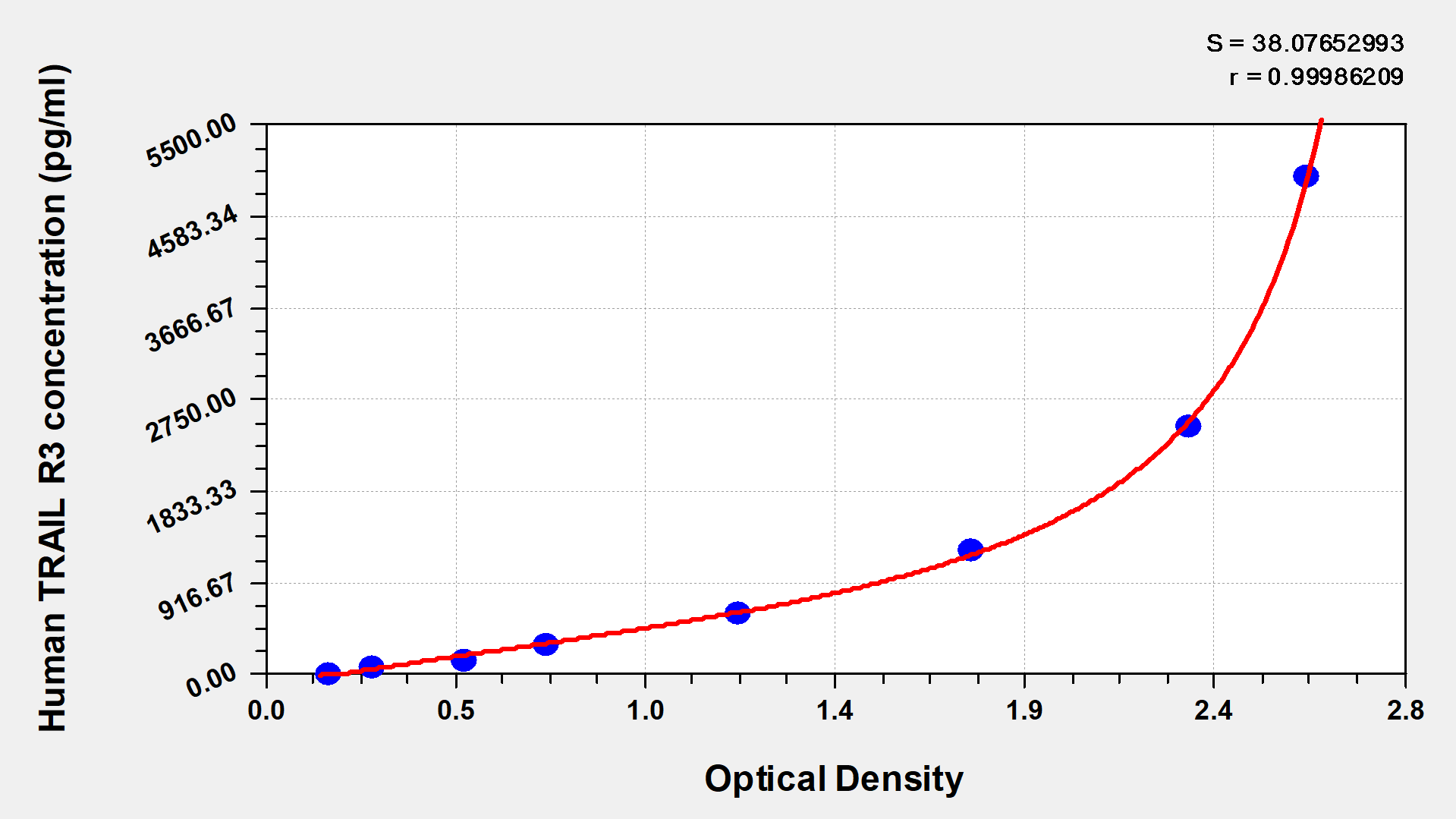 通過線性范圍來計算出實(shí)際的檢測樣本值,定量試劑盒標(biāo)準(zhǔn)曲線的相關(guān)系數(shù)R大于0.99。以CSB-E07270h(人脂聯(lián)素(ADP)ELISA Kit)為例的標(biāo)準(zhǔn)曲線。