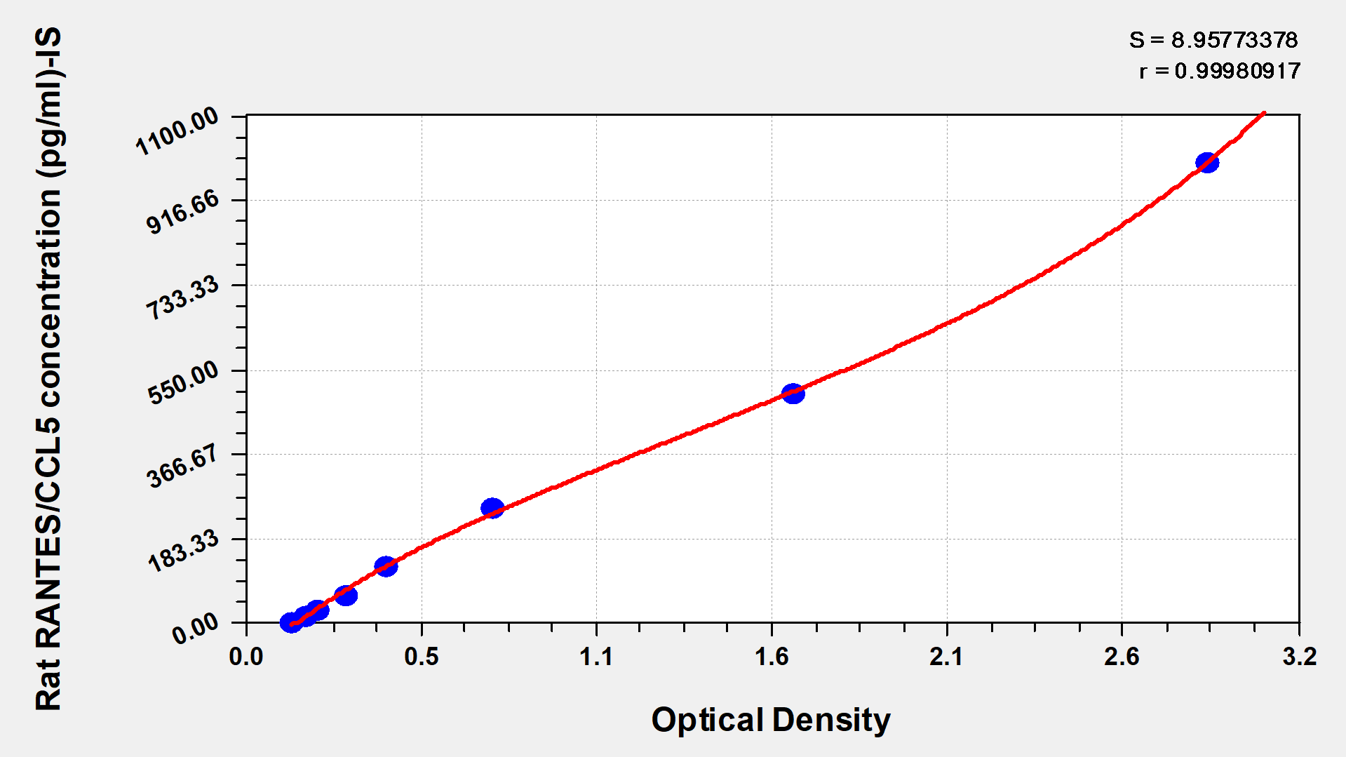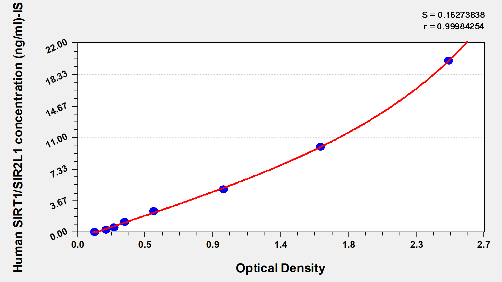 通過線性范圍來計算出實際的檢測樣本值,定量試劑盒標準曲線的相關系數R大于0.99。以CSB-E07270h(人脂聯素(ADP)ELISA Kit)為例的標準曲線。