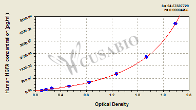 通過(guò)線性范圍來(lái)計(jì)算出實(shí)際的檢測(cè)樣本值,定量試劑盒標(biāo)準(zhǔn)曲線的相關(guān)系數(shù)R大于0.99。以CSB-E07270h(人脂聯(lián)素(ADP)ELISA Kit)為例的標(biāo)準(zhǔn)曲線。