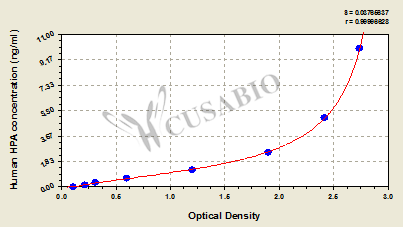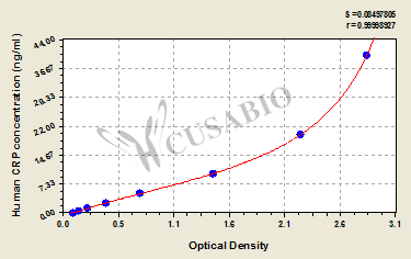 通過(guò)線性范圍來(lái)計(jì)算出實(shí)際的檢測(cè)樣本值,定量試劑盒標(biāo)準(zhǔn)曲線的相關(guān)系數(shù)R大于0.99。以CSB-E07270h(人脂聯(lián)素(ADP)ELISA Kit)為例的標(biāo)準(zhǔn)曲線。