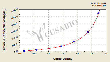 通過線性范圍來計算出實際的檢測樣本值,定量試劑盒標準曲線的相關系數R大于0.99。以CSB-E07270h(人脂聯素(ADP)ELISA Kit)為例的標準曲線。