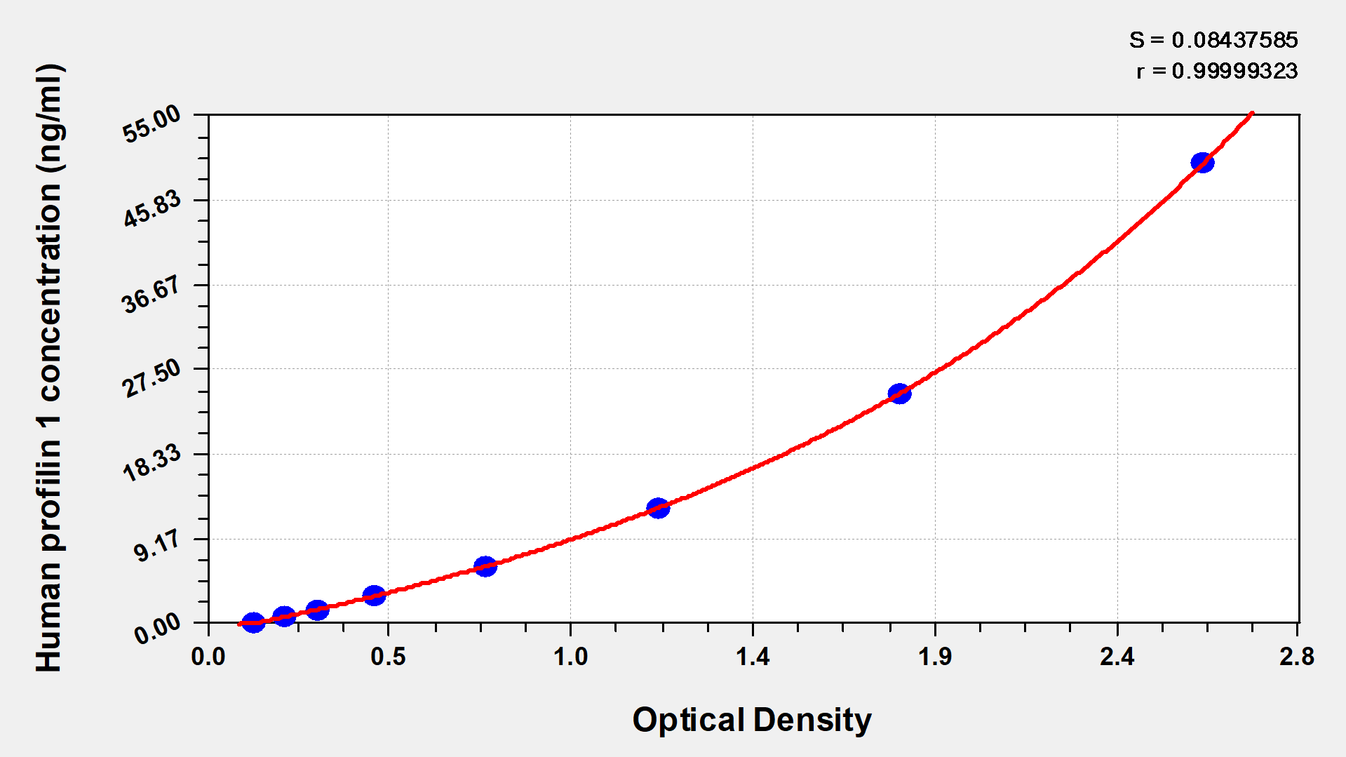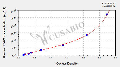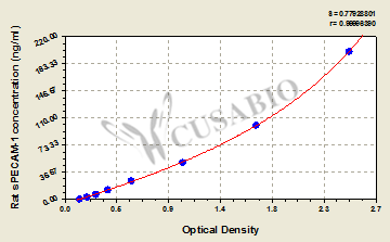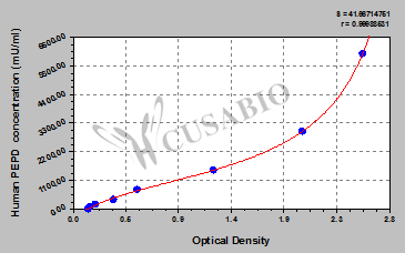 通過線性范圍來計算出實際的檢測樣本值,定量試劑盒標準曲線的相關系數(shù)R大于0.99。以CSB-E07270h(人脂聯(lián)素(ADP)ELISA Kit)為例的標準曲線。