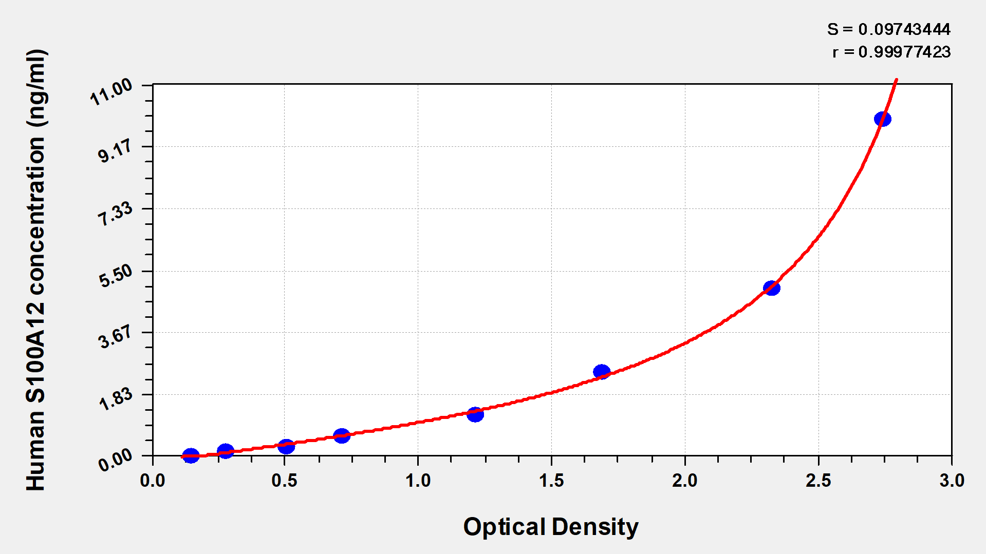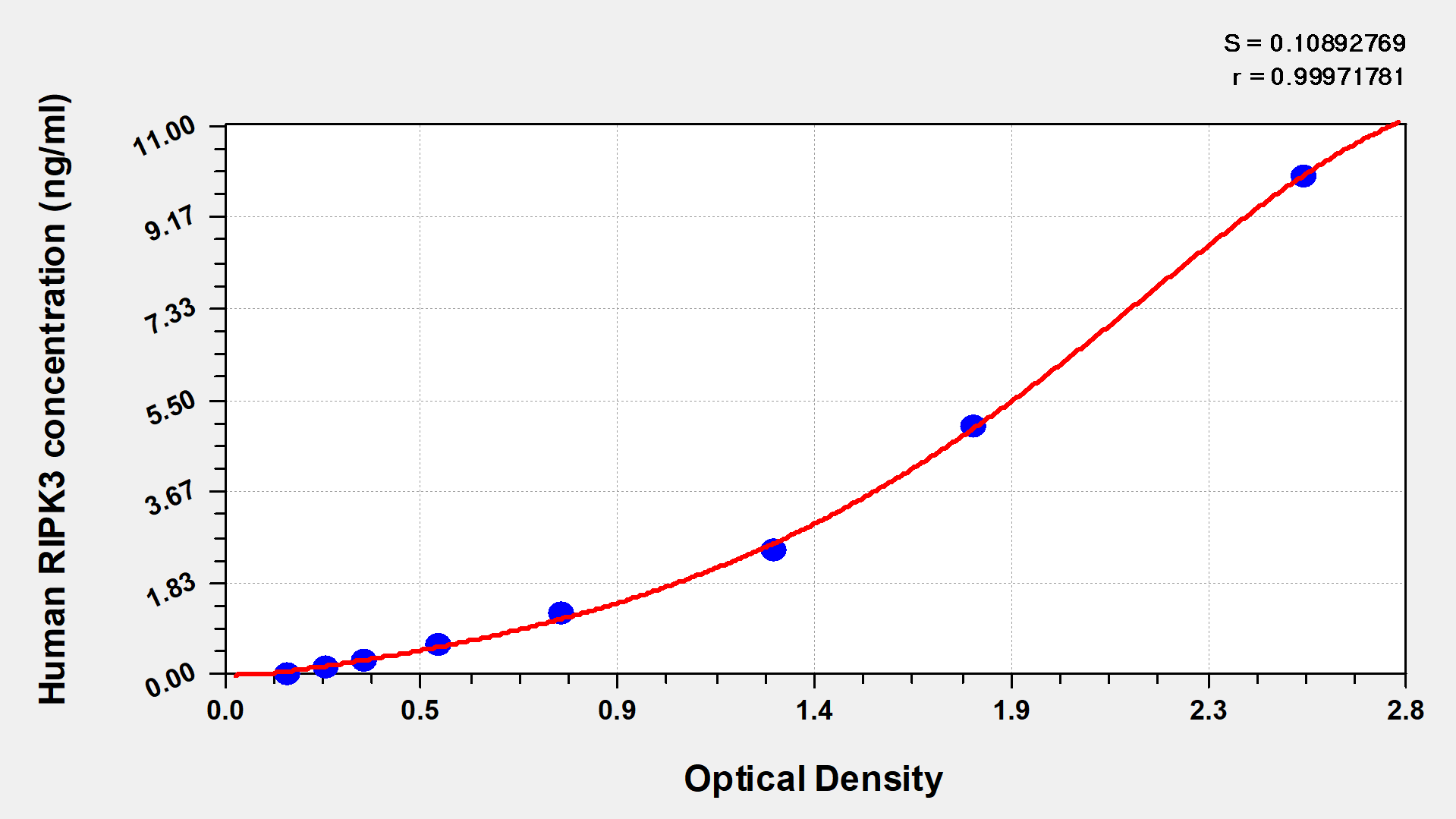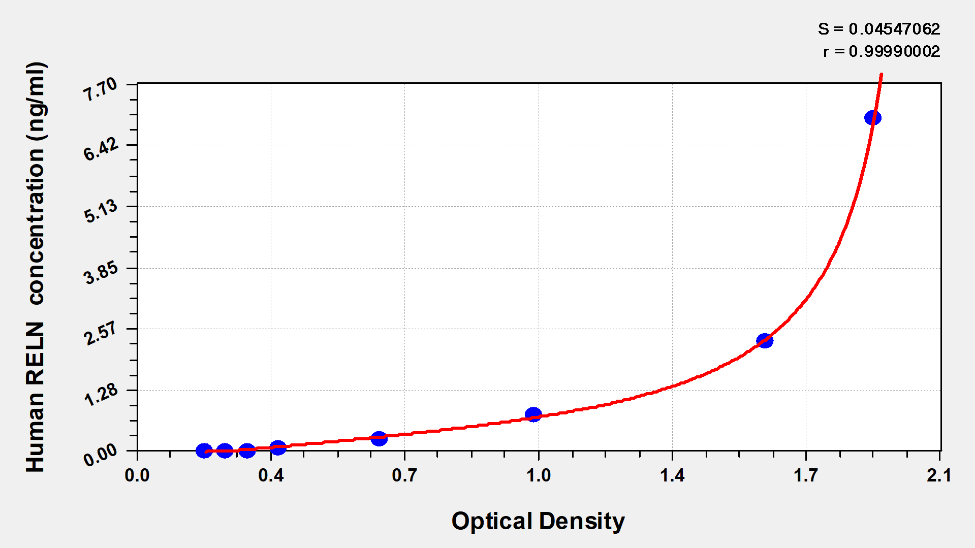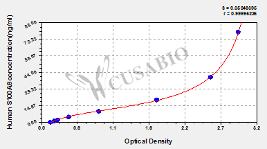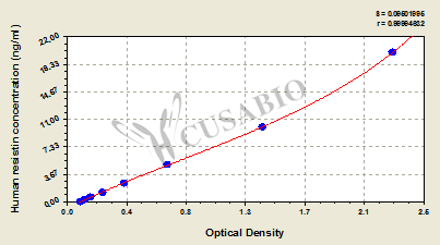 通過(guò)線(xiàn)性范圍來(lái)計(jì)算出實(shí)際的檢測(cè)樣本值,定量試劑盒標(biāo)準(zhǔn)曲線(xiàn)的相關(guān)系數(shù)R大于0.99。以CSB-E07270h(人脂聯(lián)素(ADP)ELISA Kit)為例的標(biāo)準(zhǔn)曲線(xiàn)。