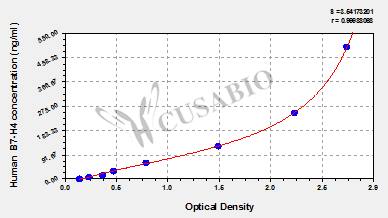 通過(guò)線(xiàn)性范圍來(lái)計(jì)算出實(shí)際的檢測(cè)樣本值,定量試劑盒標(biāo)準(zhǔn)曲線(xiàn)的相關(guān)系數(shù)R大于0.99。以CSB-E07270h(人脂聯(lián)素(ADP)ELISA Kit)為例的標(biāo)準(zhǔn)曲線(xiàn)。
