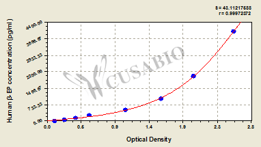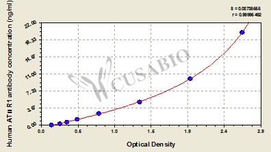 通過(guò)線性范圍來(lái)計(jì)算出實(shí)際的檢測(cè)樣本值,定量試劑盒標(biāo)準(zhǔn)曲線的相關(guān)系數(shù)R大于0.99。以CSB-E07270h(人脂聯(lián)素(ADP)ELISA Kit)為例的標(biāo)準(zhǔn)曲線。