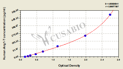 通過線性范圍來計算出實際的檢測樣本值,定量試劑盒標準曲線的相關系數(shù)R大于0.99。以CSB-E07270h(人脂聯(lián)素(ADP)ELISA Kit)為例的標準曲線。