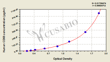 通過線性范圍來計算出實際的檢測樣本值,定量試劑盒標準曲線的相關(guān)系數(shù)R大于0.99。以CSB-E07270h(人脂聯(lián)素(ADP)ELISA Kit)為例的標準曲線。