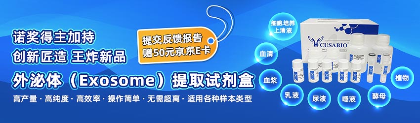 CUSABIO外泌體提取試劑盒提供了一種簡單可靠的方法,可從細(xì)胞培養(yǎng)上清液,血清,血漿,乳液,尿液,唾液、酵母、植物中提取完整的外泌體。