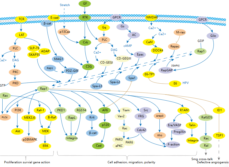 RAP1(Ras-related protein 1)廣泛存在于多種細(xì)胞中,并且在復(fù)雜的信號(hào)轉(zhuǎn)導(dǎo)網(wǎng)絡(luò)中扮演著重要的角色的小G蛋白。在細(xì)胞外刺激作用下,