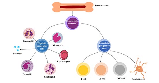 造血干細胞(Hematopoietic stem cells, HSC)是一類成體干細胞,具有干細胞的特性:自我更新和分化潛能。 造血干細胞是一種骨髓來源的多能干細胞,它是血液系統中的“種子”細胞。造血干細胞(HSCs)在造
