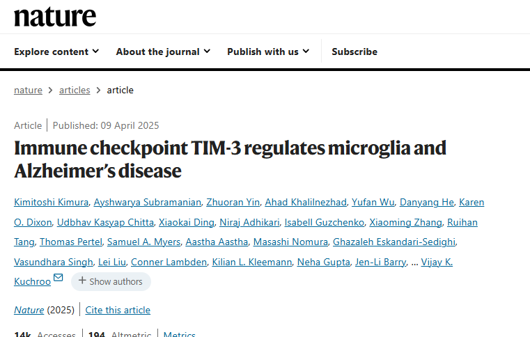 01靶點:TIM3 (HAVCR2),應用:癌癥免疫治療和阿爾茨海默病,來源:Immunecheckpoint TIM-3 regulates microglia and Alzheimer s disease Nature,2025 Apr 09