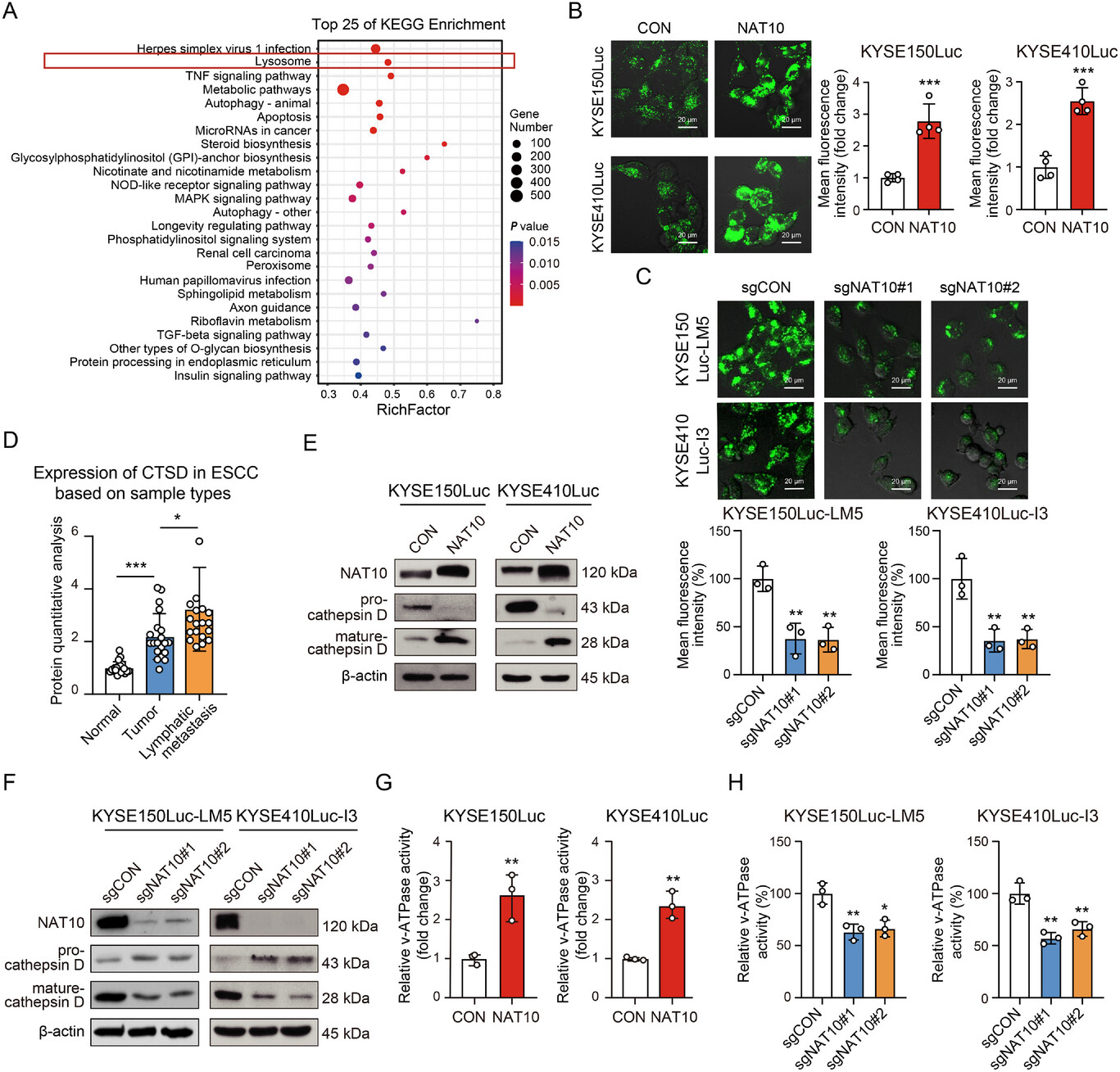 來源:NAT10 increases lysosomal acidification to promote esophageal cancer metastasis via ac4C acetylation of ATP6V0E1 mRNA.Adv Sci (Weinh),2025 Aug