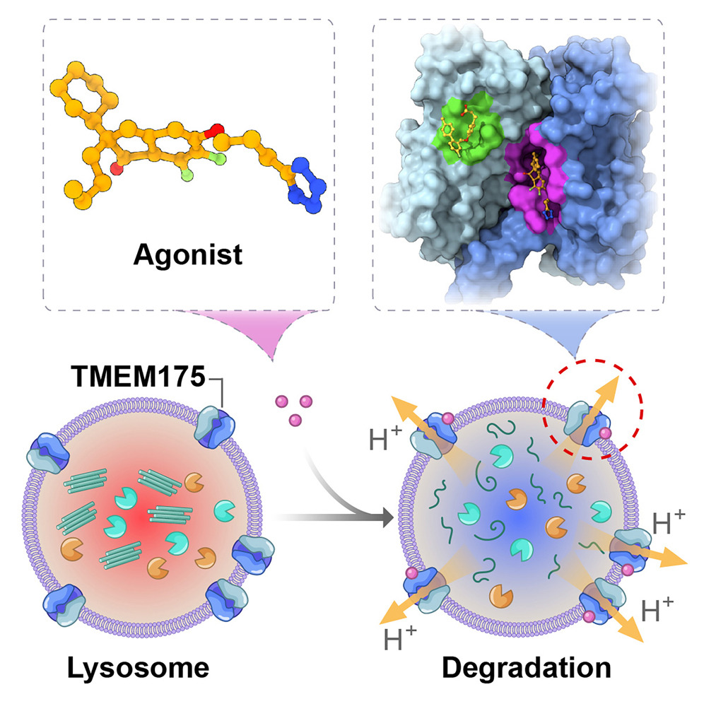2025年8月26日,中科中山藥物創新研究院李平研究員團隊在《Neuron》發表研究,開發出多個溶酶體TMEM175氫離子通道的高效激活劑,并解析了其與TMEM175的復合物冷凍電鏡結構,揭示了小分子動態調控TMEM175的分子機制。研究發現,這些激活劑能顯著促進細胞對α-突觸核蛋白聚集體的清除,改善帕金森病(PD)模型的病理癥狀,為PD的個性化治療提供了新策略。