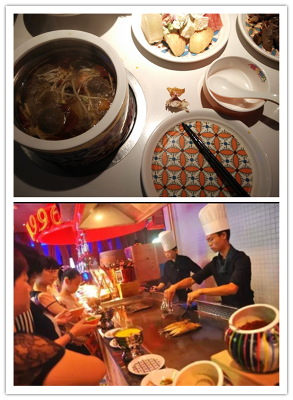 待我們各自選擇了自己的鍋底之后,就是我們大顯身手的時候了,基圍蝦、魚、鴨翅、雞腿、牛肉丸……還有供不應(yīng)求的牛排,各種各樣的海鮮,我們一行人弄了一桌子的美食,盡收鍋里,伴隨著溫度的升高,空氣中的香味也漸漸變得濃郁起來,然而我們的胃早就等待著這一刻的到來。