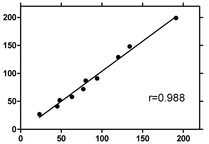 圖1.2 某單抗膠乳增強免疫比濁法臨床對比結果